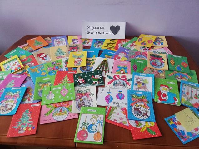 Dziękujemy SP w Dunkowej za przekazanie nam własnoręcznie zrobionych pięknych kartek świątecznych.