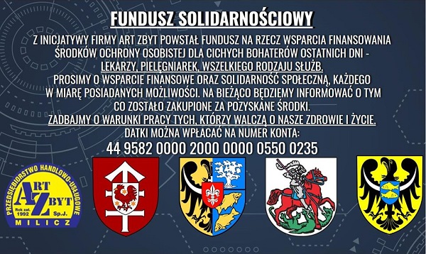 Można nas również wesprzeć finansowo wpłacając środki pieniężne na konto FUNDUSZU SOLIDARNOŚCIOWEGO prosimy w tytule przelewu wpisać: "Pomoc DPS w Miliczu"